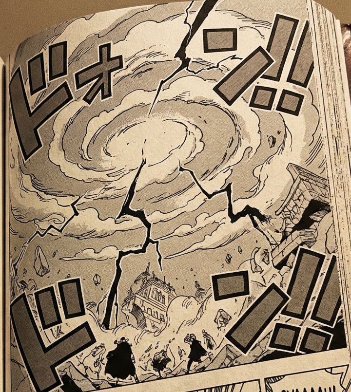 看似莫得裂天,本色上通盘太空的云朵王人被震散了!代表了他们两东谈主的交往力达到皇级以上,相当过劲的田地!跟过去罗杰与白胡子对拼时的画面是相似的,有裂天,然后震散全部云朵!